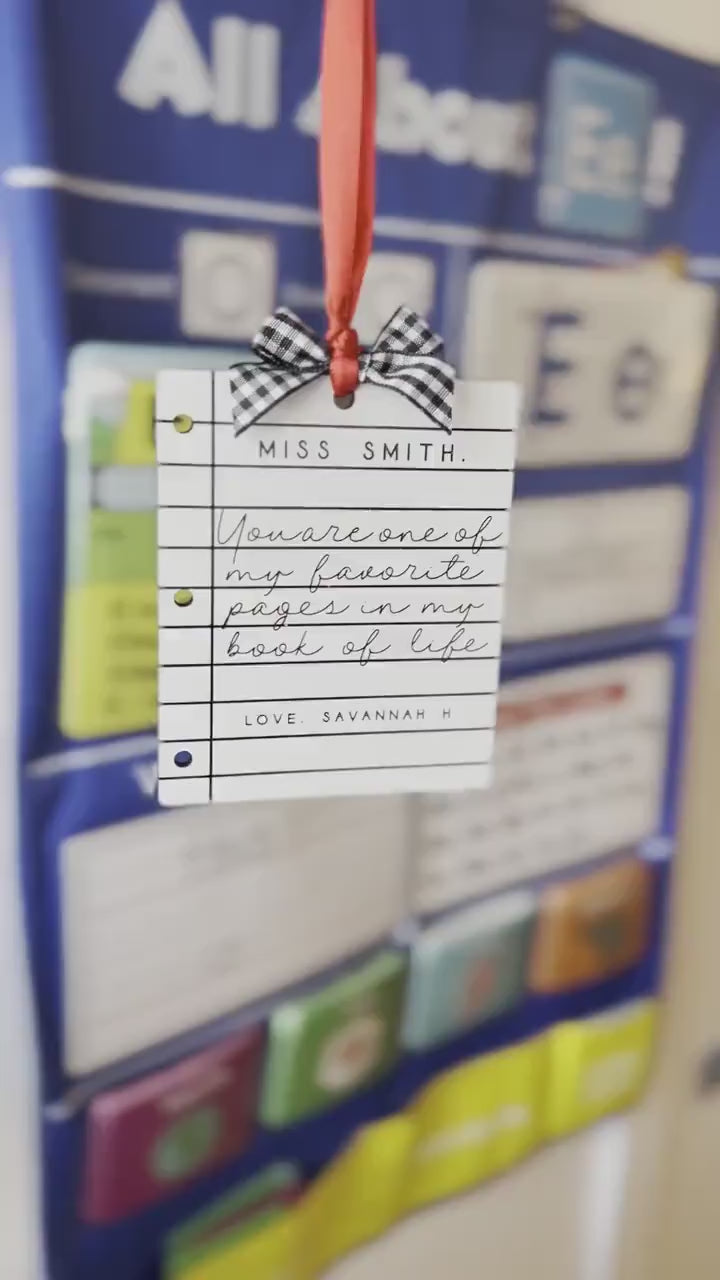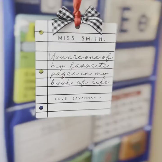 Looking for the perfect Christmas gift for your child’s favorite teacher? Our Custom Teacher Christmas Ornament is a heartfelt, personalized gift that will brighten any teacher's holiday season! This beautifully crafted wooden ornament is designed in the shape of a classic piece of notebook paper, giving it a fun and memorable school-themed look.