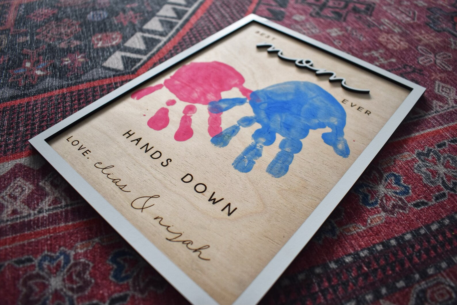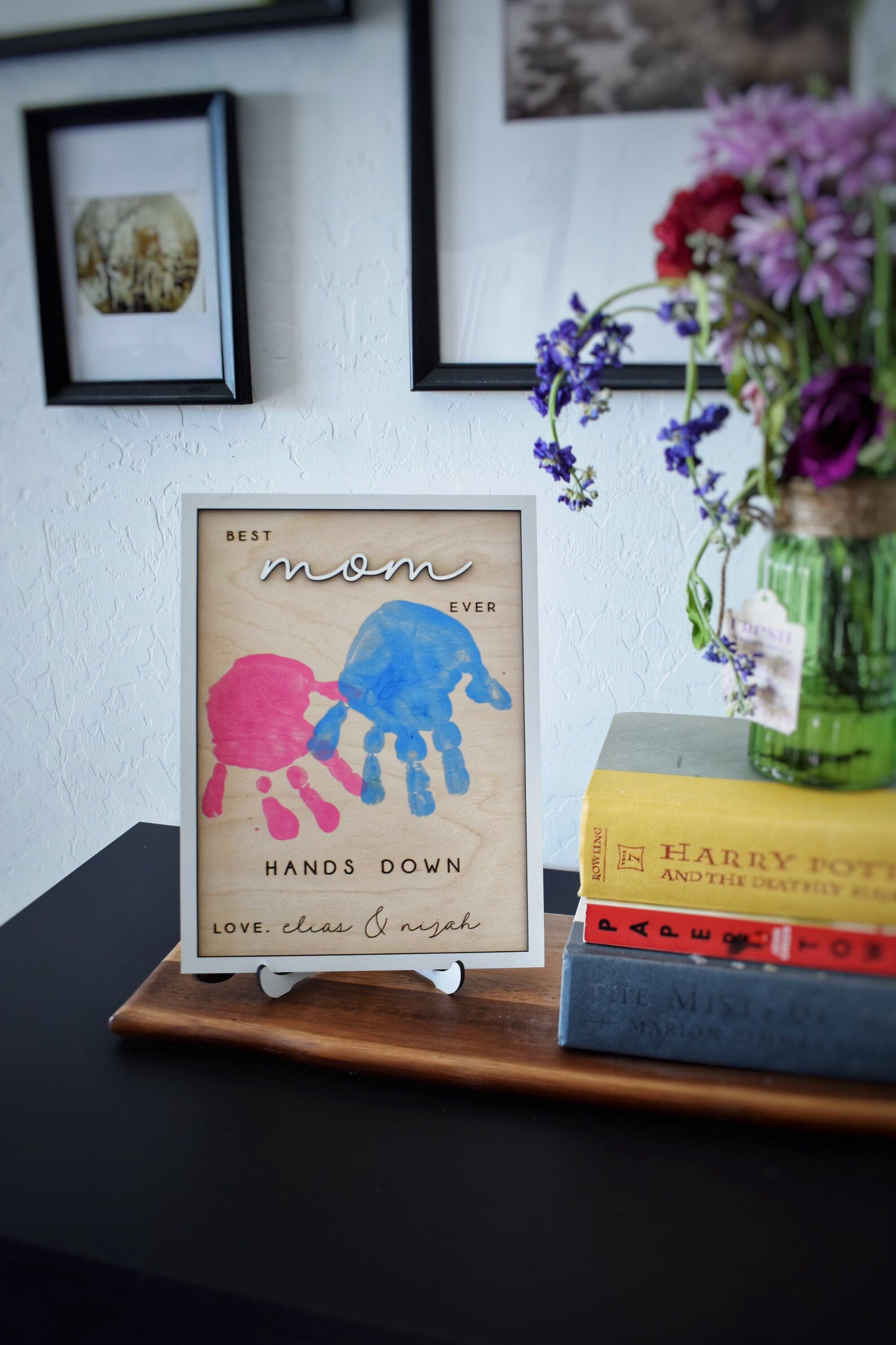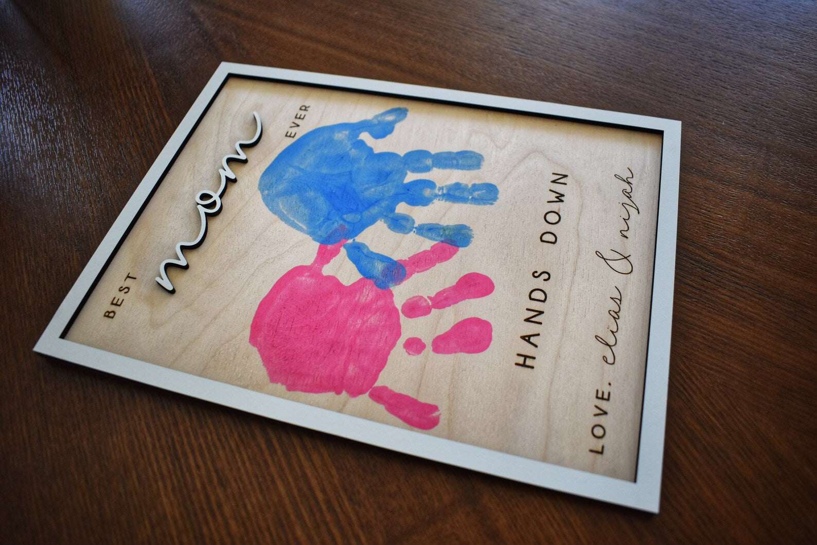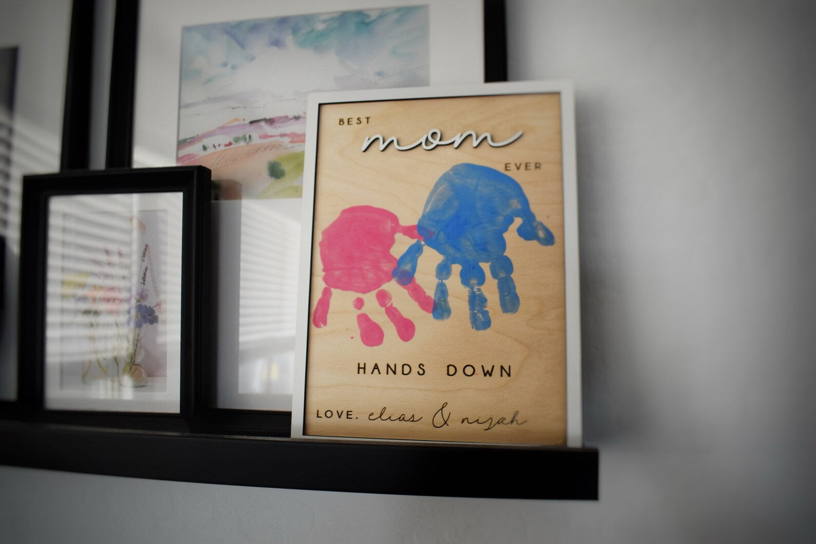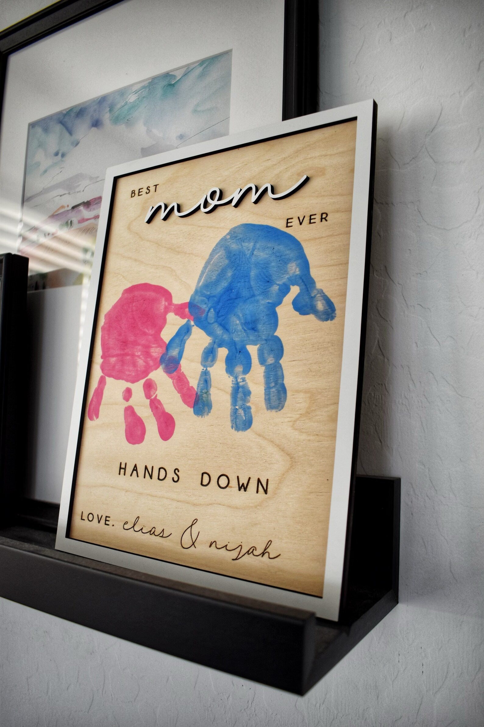 Celebrate Mother's Day in a truly unique and heartfelt way with our handcrafted wooden sign. This sentimental piece is meticulously engraved with the words "Best Mom Ever" at the top, creating a beautiful tribute to the incredible moms in our lives. But that's not all—this personalized sign takes it a step further by incorporating your children's handprints, making it a cherished keepsake for years to come.